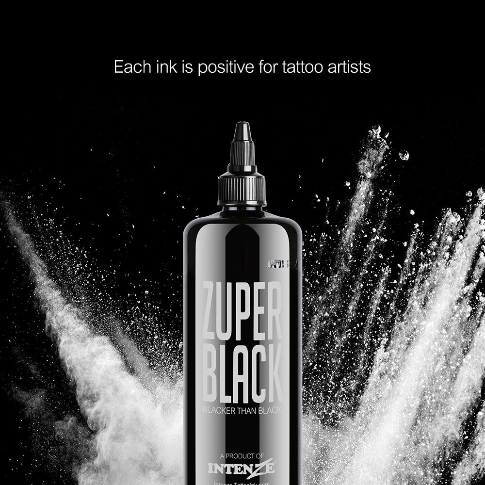 It has a cool undertone. Details Intenze Tattoo Inks Zuper Black was invented by world famous tattoo artist Mario Barth. It was created by the tattoo artist named Mario.